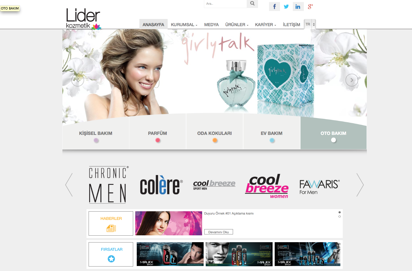 Kendi sektörünün öncü isimlerinden Lider Kozmetik firması için kurumsal gücünü yansıtan, başarılı bir web sayfası hazırladık.
